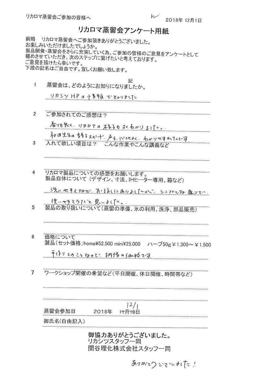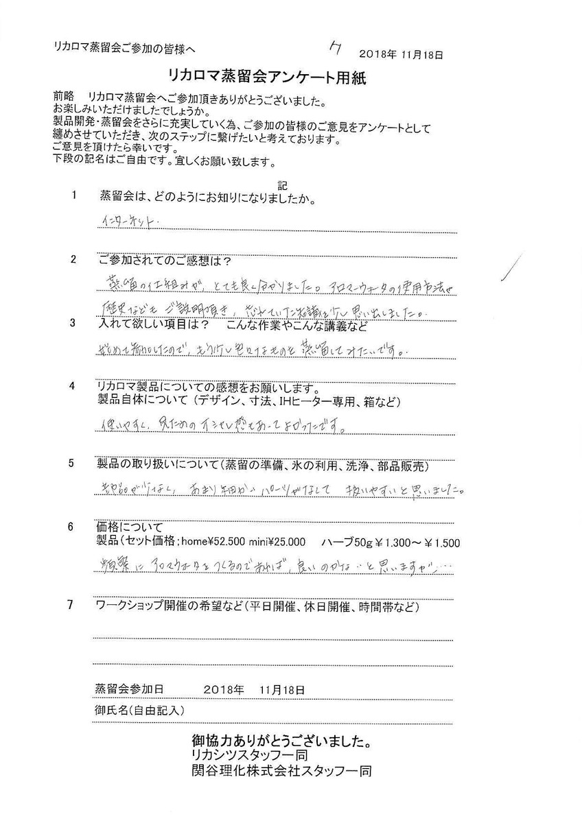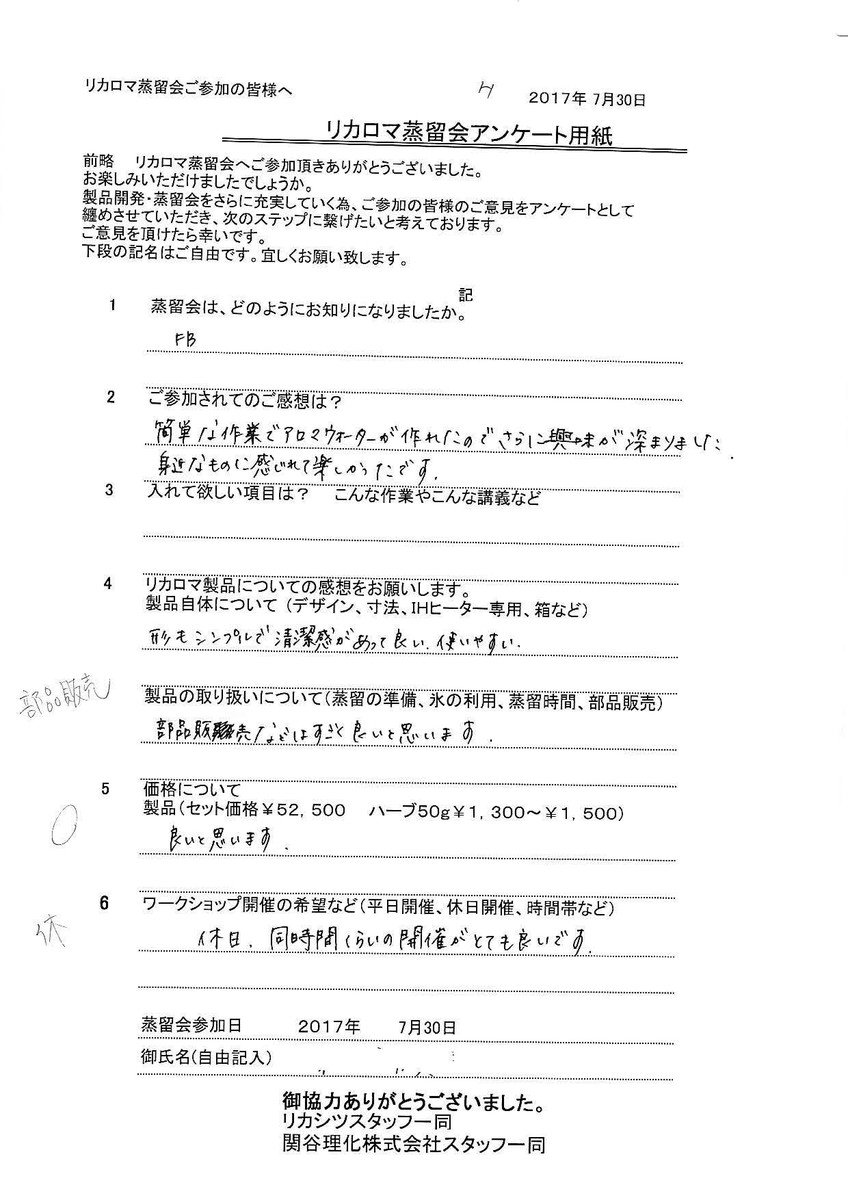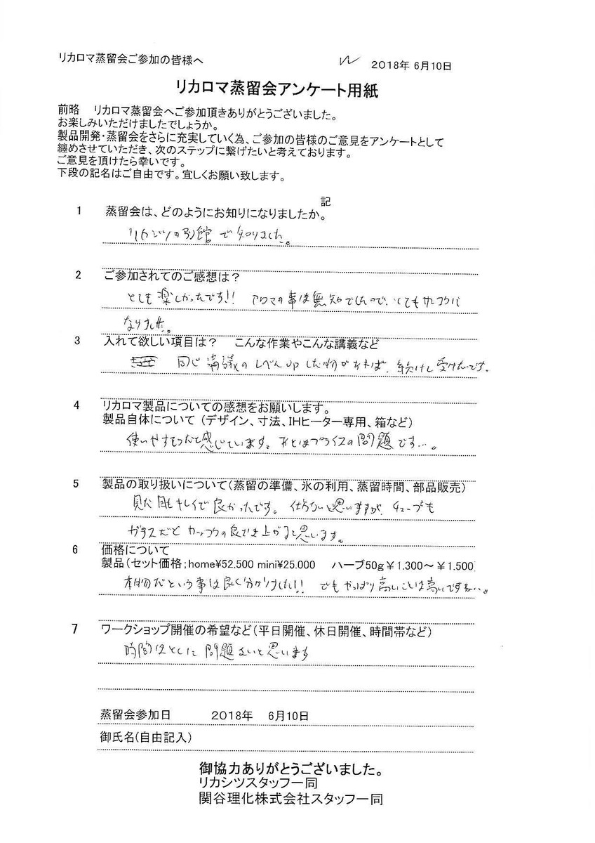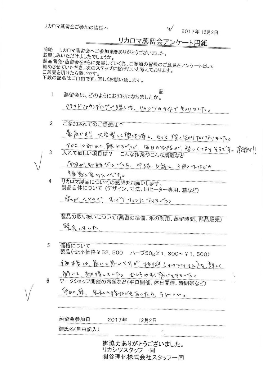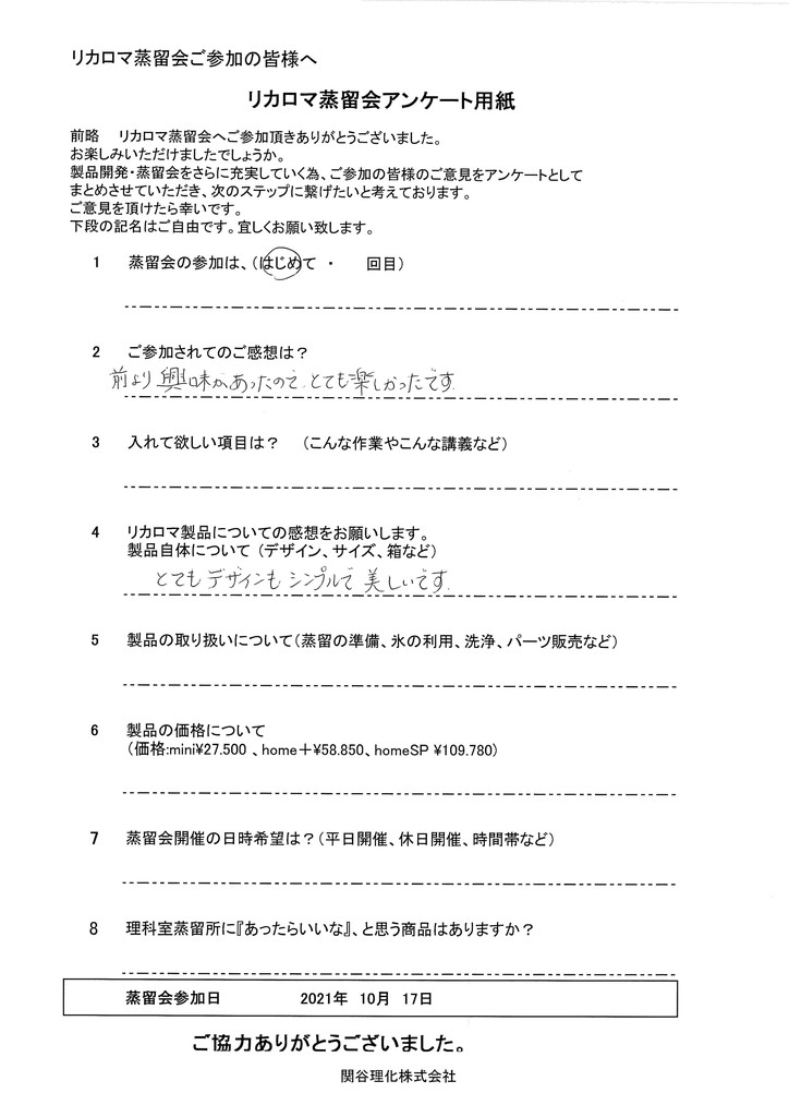 リカロマ蒸留会 ワークショップご体験者の感想を掲載しています。 リカロマ蒸留会 ワークショップのご予約は「リカシツ店舗」もしくは「リカロマ蒸留会 ワークショップ]詳細&ご予約HPにて、こちらから ※「予約サイト:RESERVA会員ログインしていただかないと 掲載内容が見れませんのでご注意ください」