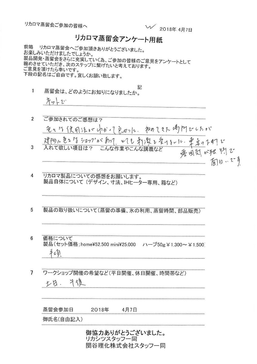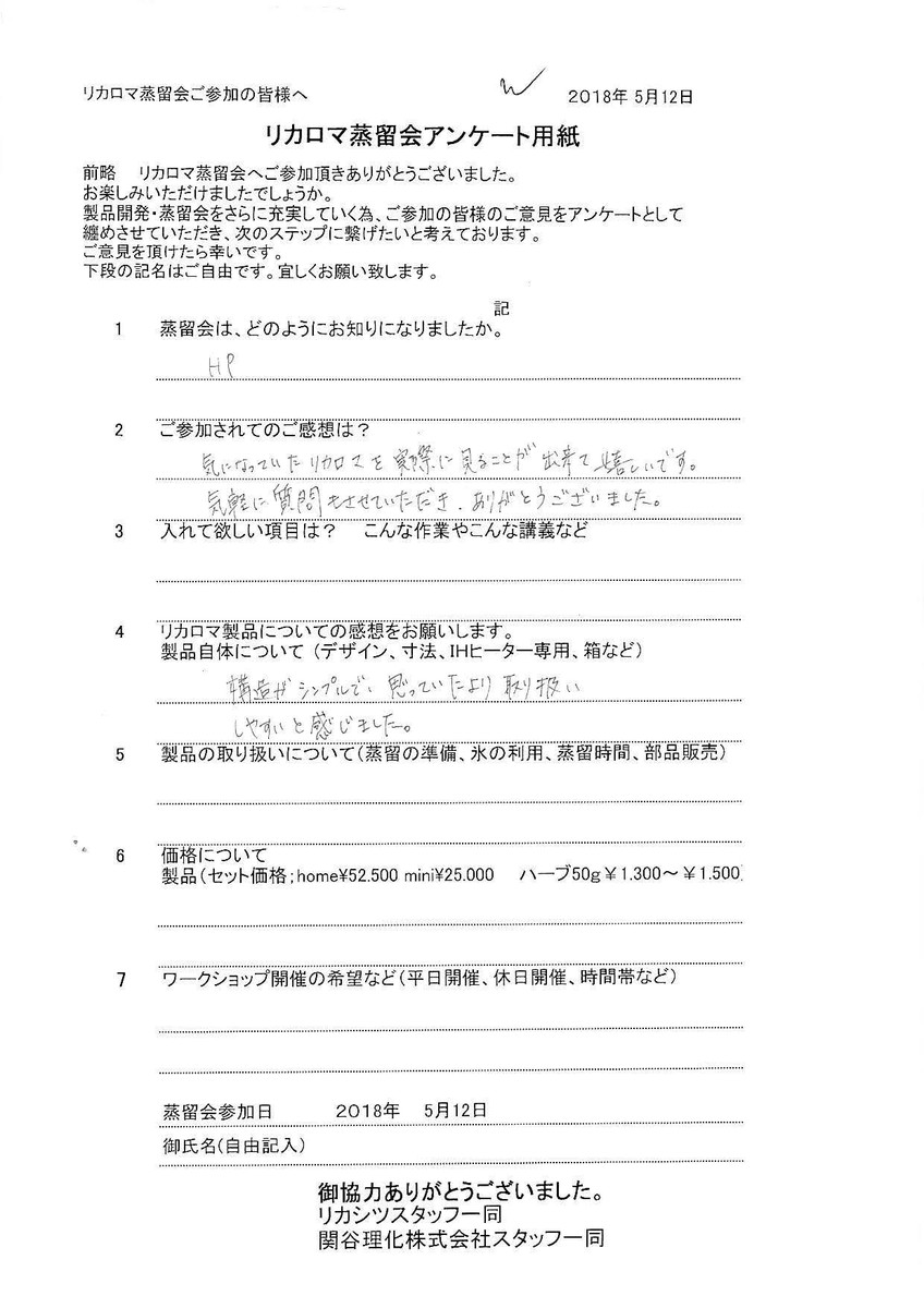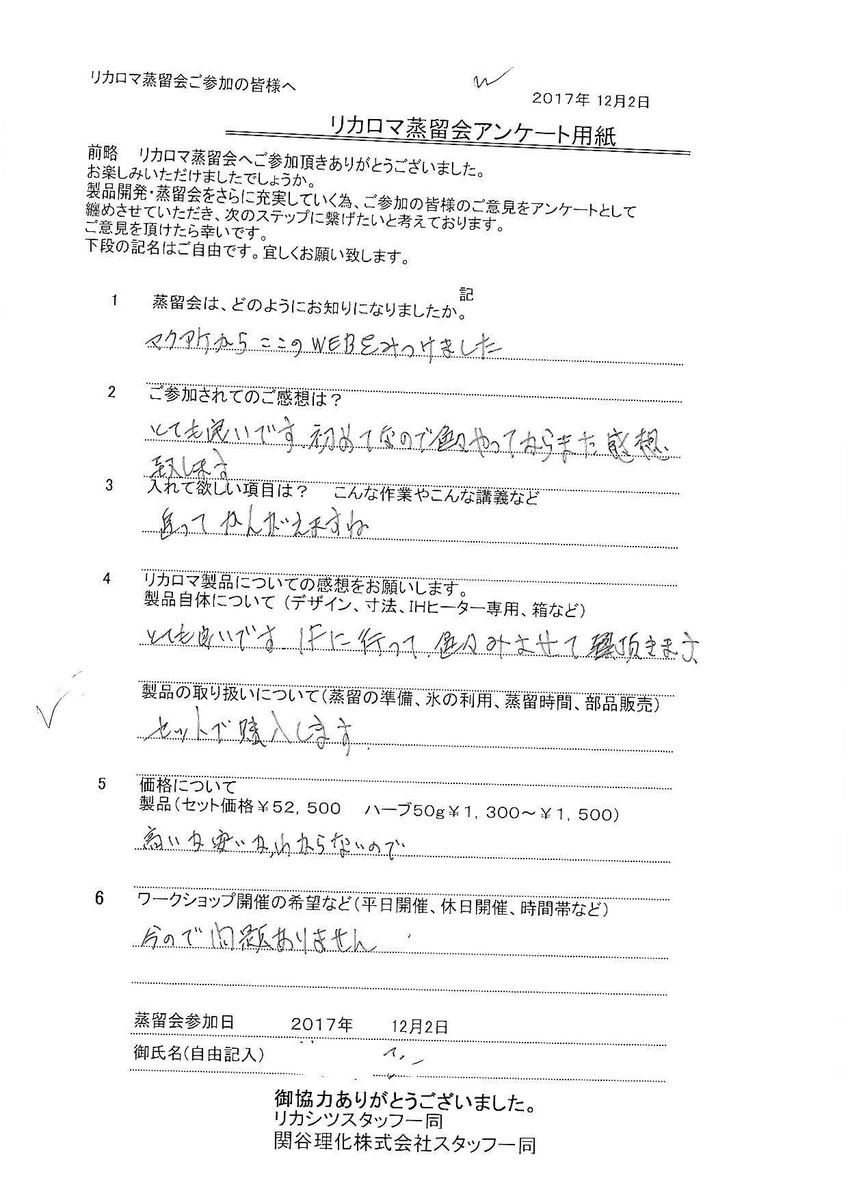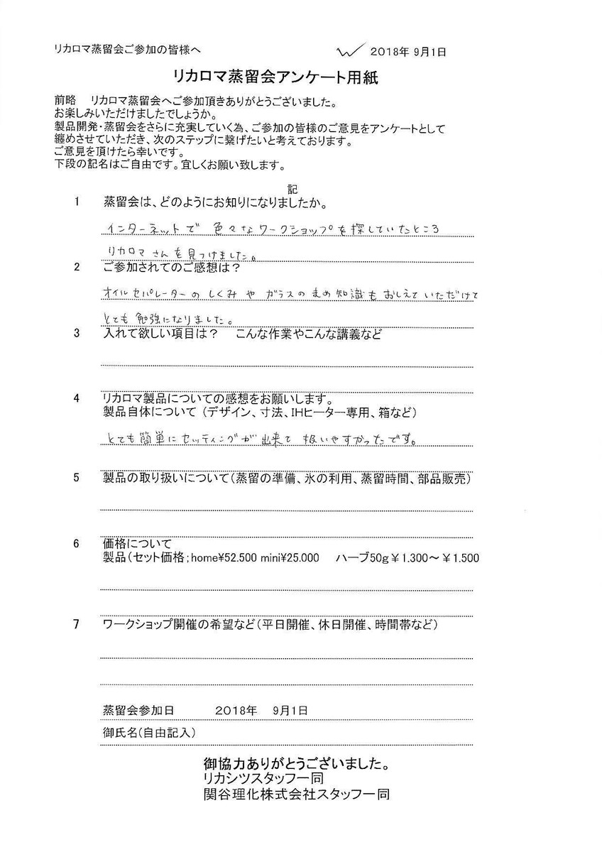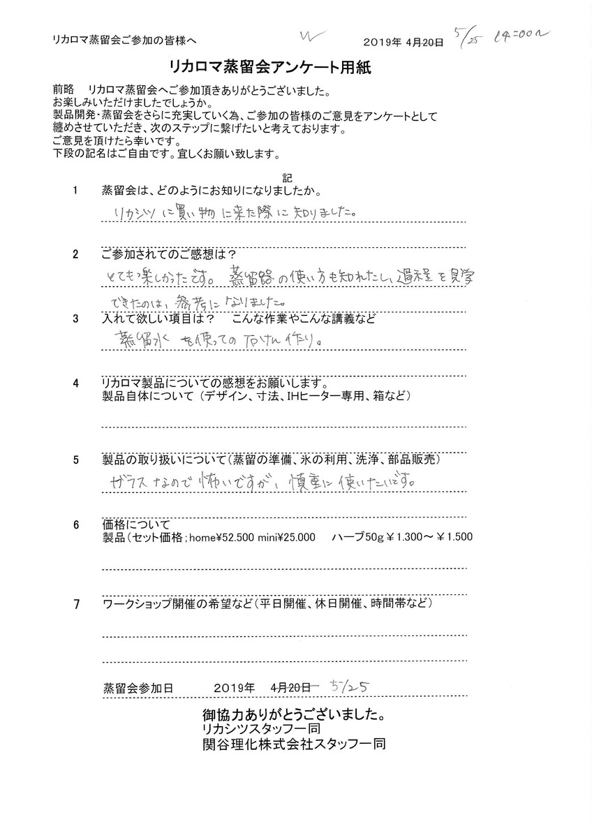 リカロマ蒸留会 ワークショップご体験者の感想を掲載しています。 リカロマ蒸留会 ワークショップのご予約は「リカシツ店舗」もしくは「リカロマ蒸留会 ワークショップ]詳細&ご予約HPにて、こちらから ※「予約サイト:RESERVA会員ログインしていただかないと 掲載内容が見れませんのでご注意ください」